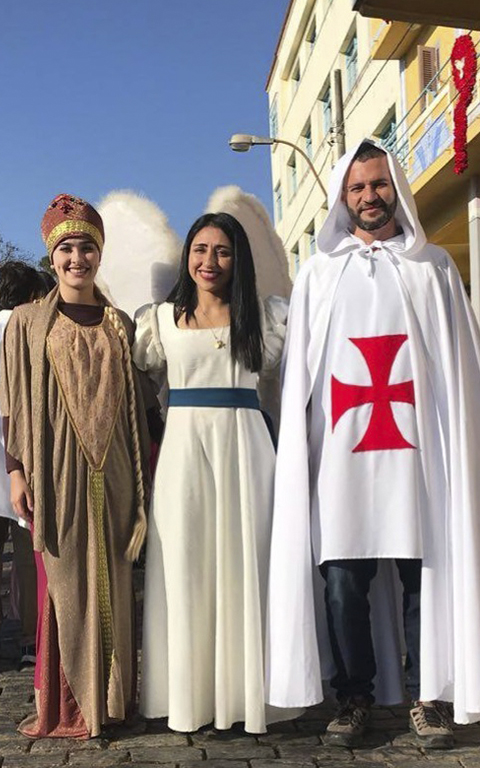 09h: Concentração em frente ao Grande Hotel Trilogia em preparação da Missa e cortejo na cidade de Cambuquira e chegando ao pátio da igreja de São Sebastião.